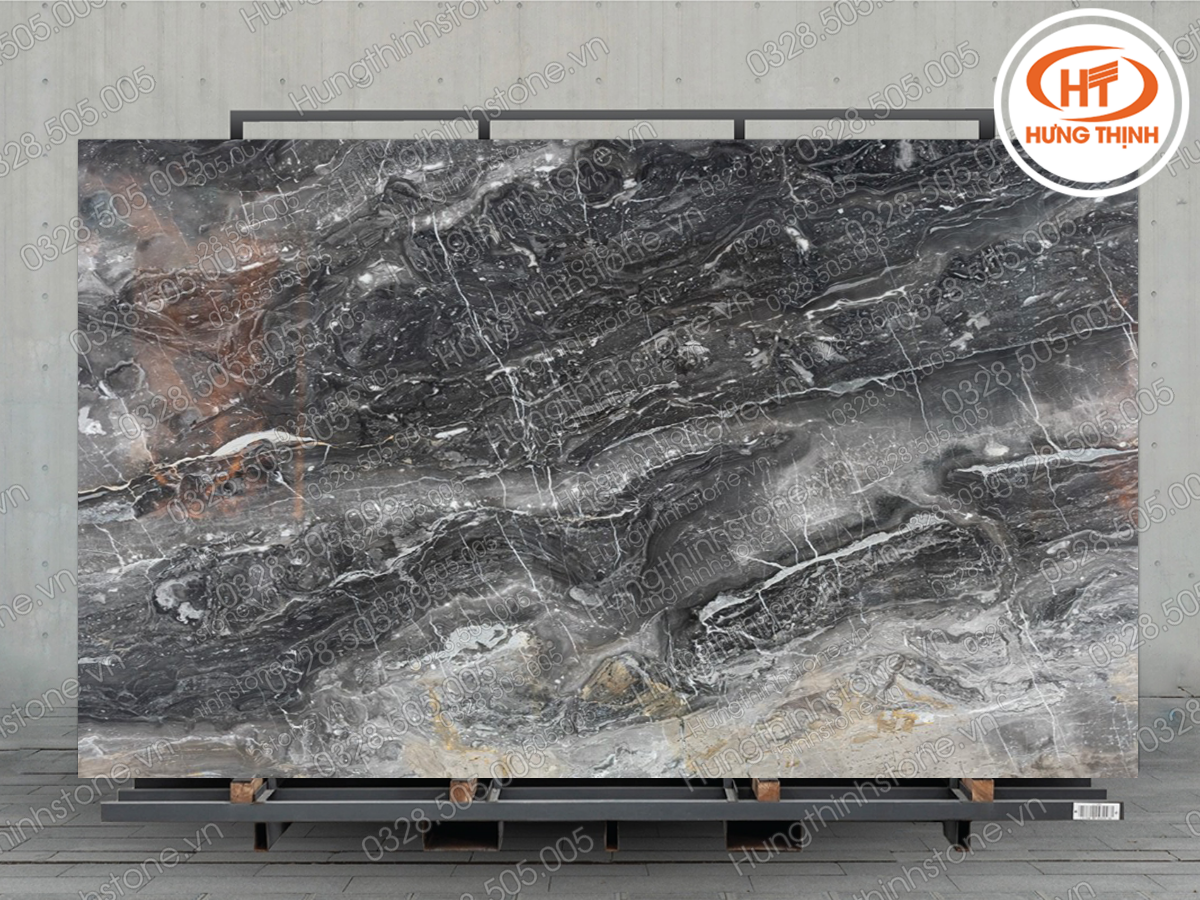 Đá marble Vân Gỗ Ý Nâu Đen tại Kho Đá Hưng Thịnh được nhập từ Italy, có vẻ đẹp sang trọng với các mảng vân màu nâu, đen, xám và trắng đan xen nhau tạo nên tổng thể cuốn hút, ấn tượng tạo điểm nhấn bắt mắt khi kết hợp cùng đồ nội ngoại thất.