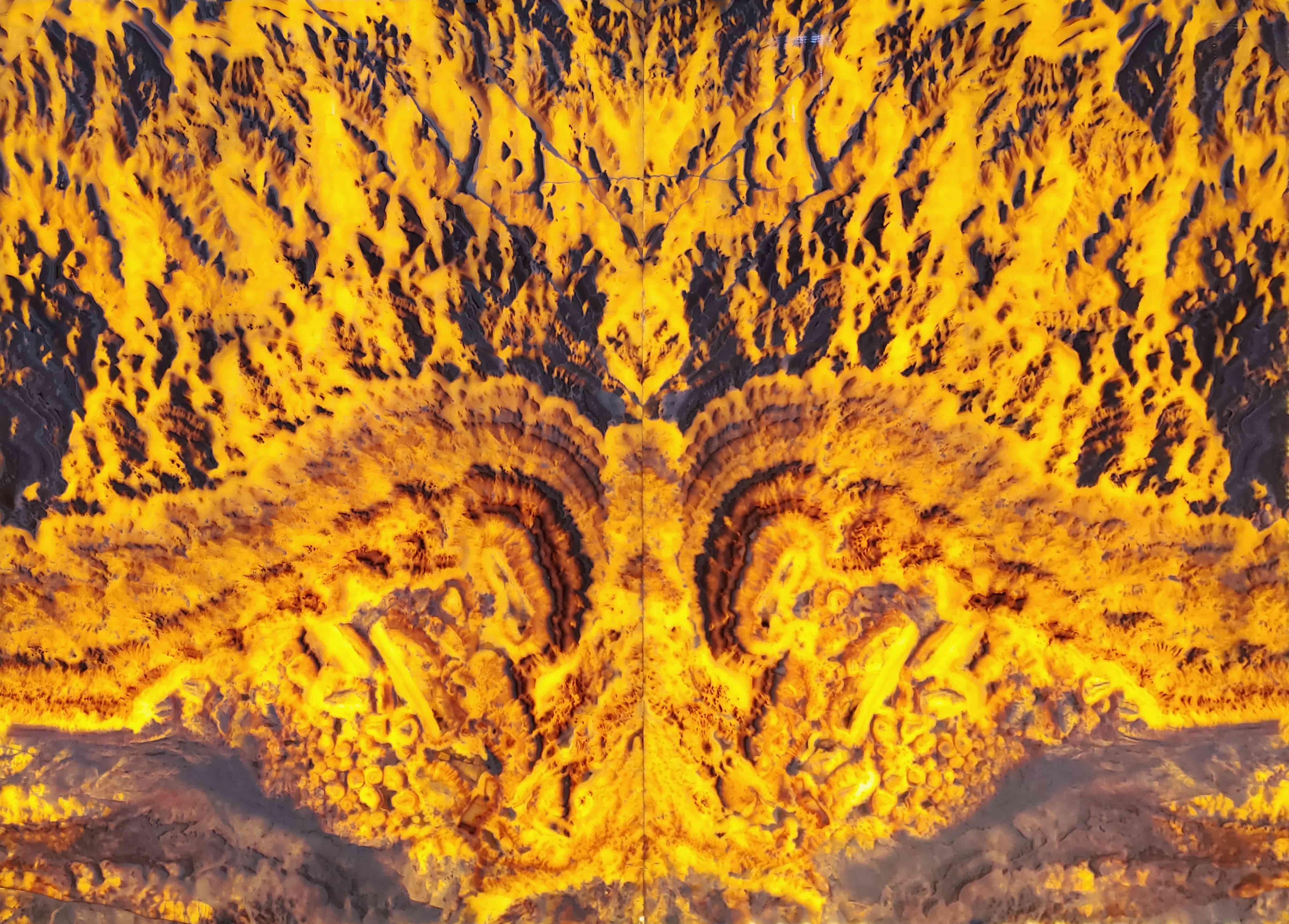 Tranh Đá Ngọc Xuyên Sáng HT06 được hình thành từ những loại đá quý hiếm, trữ lượng không nhiều nên rất được ưa chuộng và ứng dụng trong nhiều công trình cao cấp, biệt thự, căn hộ hạng sang. Tranh Đá Ngọc Xuyên Sáng có màu sắc chủ yếu là vàng, đen, kết hợp các đường vân đối xứng rất đẹp mắt, sang trọng giống như những nham thạch của núi lửa đang phun trào, làm toát lên sức mạnh, uy quyền và đẳng cấp cho công trình.